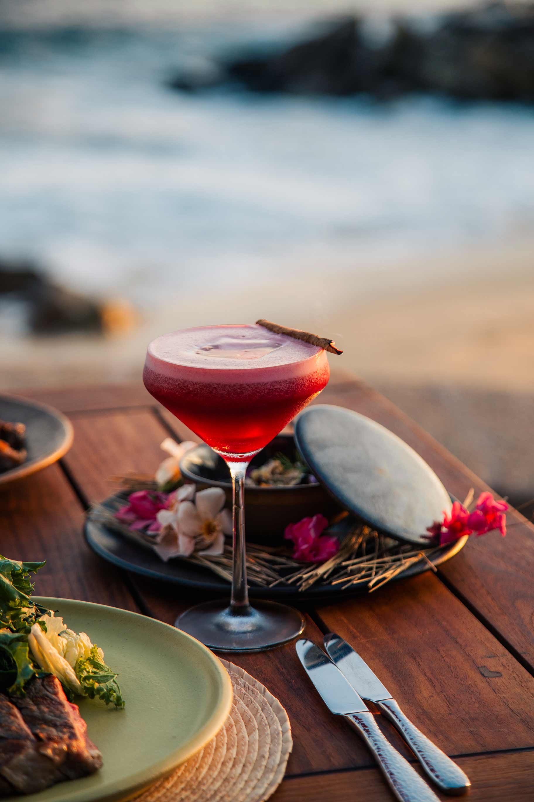 Experience an evening shaped by Baja’s elemental beauty. As the sun dips into the Pacific, the aroma of mesquite and open fire fills the air, setting the stage for expertly grilled prime cuts and coastal flavors. Each dish captures the essence of leña viva (firewood), sea breeze, and the timeless rhythm of the waves.