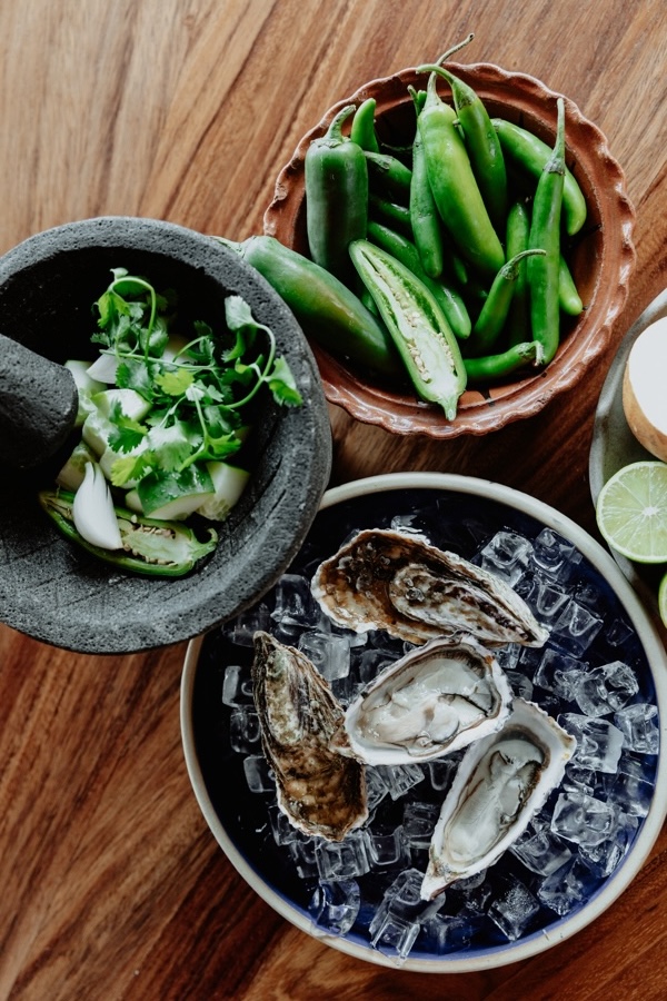 Las frías aguas que rodean Baja California enriquecen cualquier mesa con diversos pescados, desde lujosos crustáceos como langostas y camarones gigantes hasta diversos moluscos. Las prístinas ostras que degustará son una selección de una granja regional de Ensenada con prácticas de acuicultura sostenible. La cocina bajacaliforniana mezcla técnicas autóctonas con ingredientes introducidos por los misioneros europeos que llegaron a la península durante la conquista y especies japonesas introducidas en los años 70.