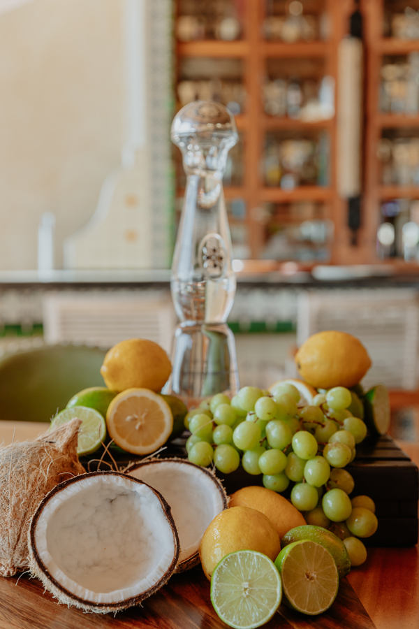 Para complementar este plato, presentamos nuestro Baja Mojito, una escapada al paraíso en una copa. Este refrescante cóctel se elabora con aceite de coco de Todos Santos, mezclado suavemente con Tequila Clase Azul Plata, agua de coco fresca, lima, menta y un toque de uvas efervescentes. Adornado con copos de coco secados en el Pedregal del Waldorf Astoria Los Cabos, añade un delicioso toque final que realza los sabores frescos y vibrantes.