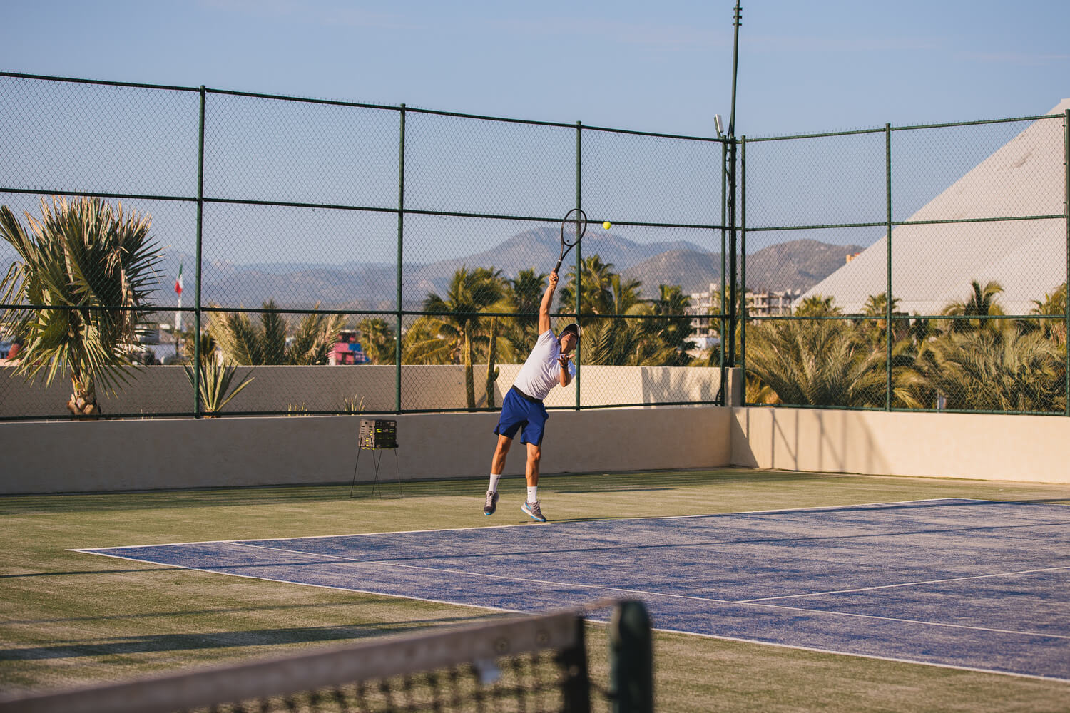 Tennis is a timeless sport, and there’s no better place to hone your skills than on our picturesque LaykoldⓇ court. Whether you’re an experienced player refining your technique or a beginner eager to learn, our facilities cater to all skill levels. Take advantage of our private lessons, available for individuals and groups, tailored to enhance your technique and elevate your game. Led by Professional Tennis Coach Arturo Navarro, a USPTA ELITE Professional, GPTCA-ATP Certified, and PTR Performance Coach with experience directing programs across seven countries, you’ll receive expert guidance to perfect your serve, footwork, and strategy— all while enjoying the stunning Cabo scenery. Lessons and training camps are offered in Spanish, English, and German.
