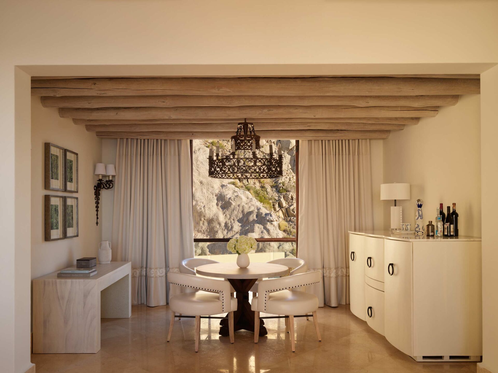 This oasis on the top floor features incredible views of the sea and sky and more than 1,600 square feet of immaculate luxury making this one of the most popular options for Pedregal guests. With three private terraces—including the expansive main terrace, loungers, and your own infinity plunge pool—it’s clear this space was designed for blended indoor/outdoor living. Interiors include an elegant living room, dining area and authentic Mexican touches throughout.