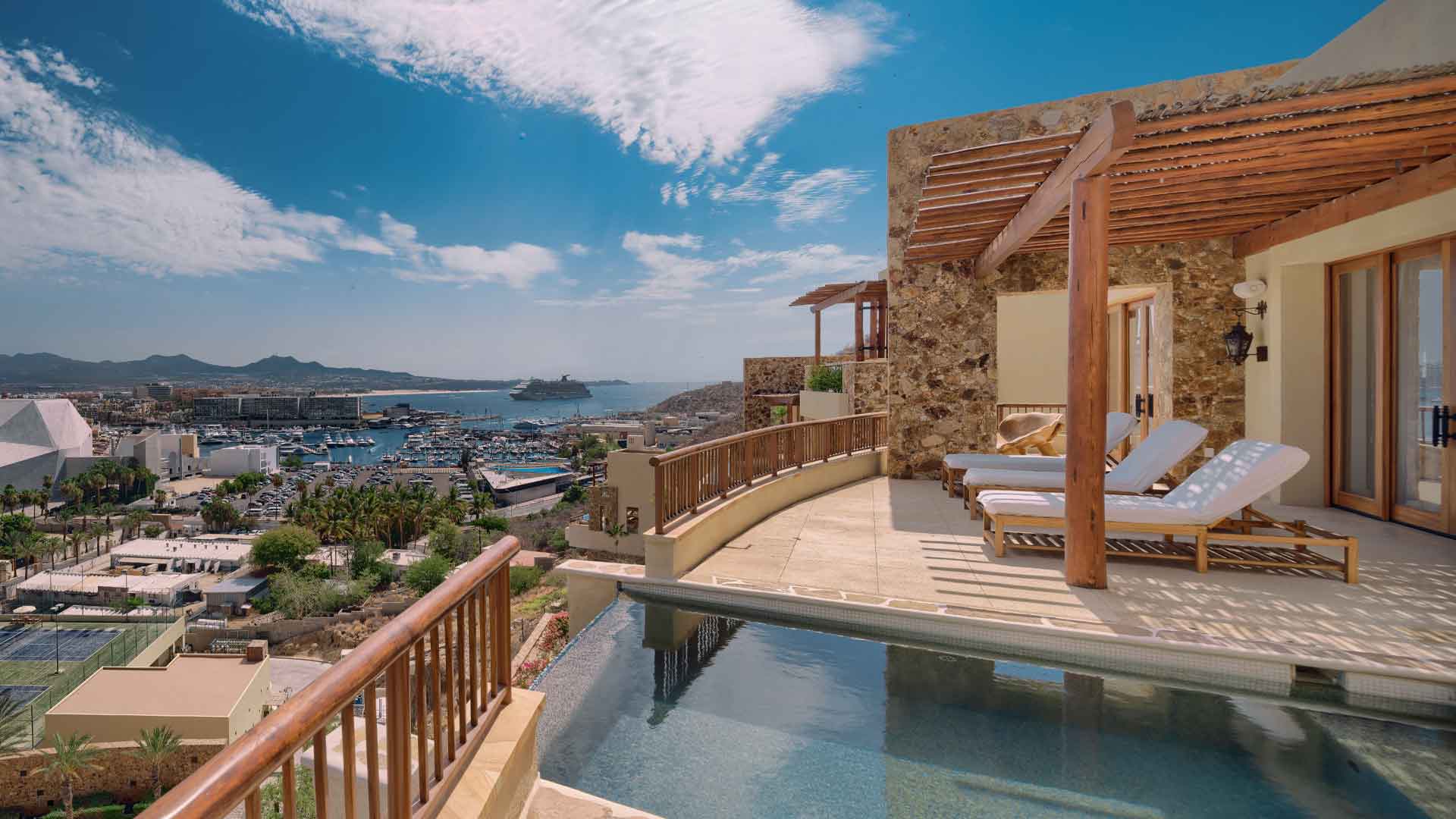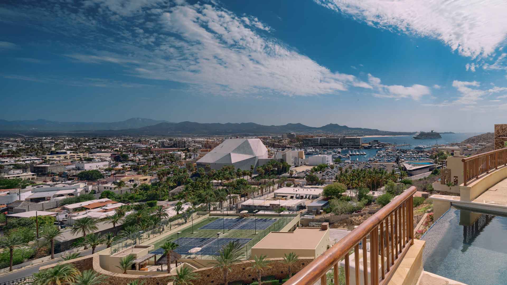 - Partial ocean views; Downtown Cabo San Lucas and Marina Views