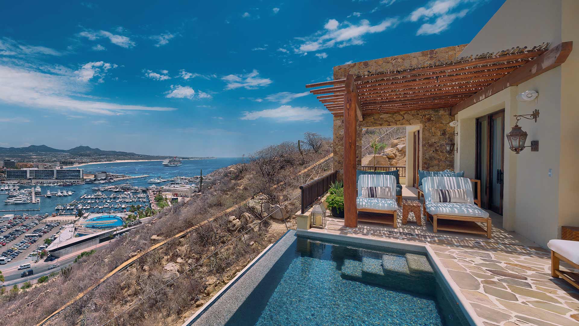 Discover unparalleled luxury at our exclusive Private Pedregal Homes, each offering over 4,000 square feet of lavish indoor-outdoor living space with breathtaking marina and sea views. Nestled into the Pedregal Mountainside, these seven private homes feature private plunge pools, expansive living areas, and personalized butler service, perfect for families or groups of six to eight guests.